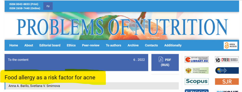 Des chercheuses russes viennent de publier une recherche allergologique concernant les patients atteints d’acné. En effet, les allergies alimentaires apparaissent clairement à l’origine de l’acné.
