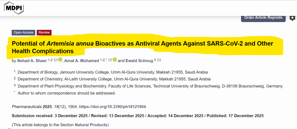 En outre, les dérivés de la rutine et de la quercétine, présents dans les extraits d’Artemisia, ont des effets antiviraux contre le SARS-CoV-2 et d’autres virus.