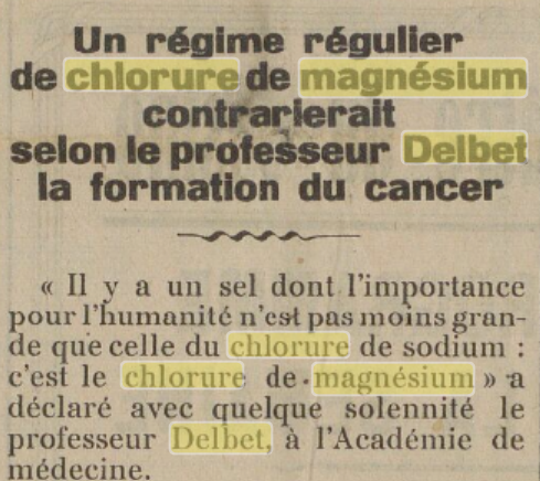 En effet, Pierre Delbet annonçait « qu’un régime régulier de chlorure de magnésium contrarierait la formation du cancer »