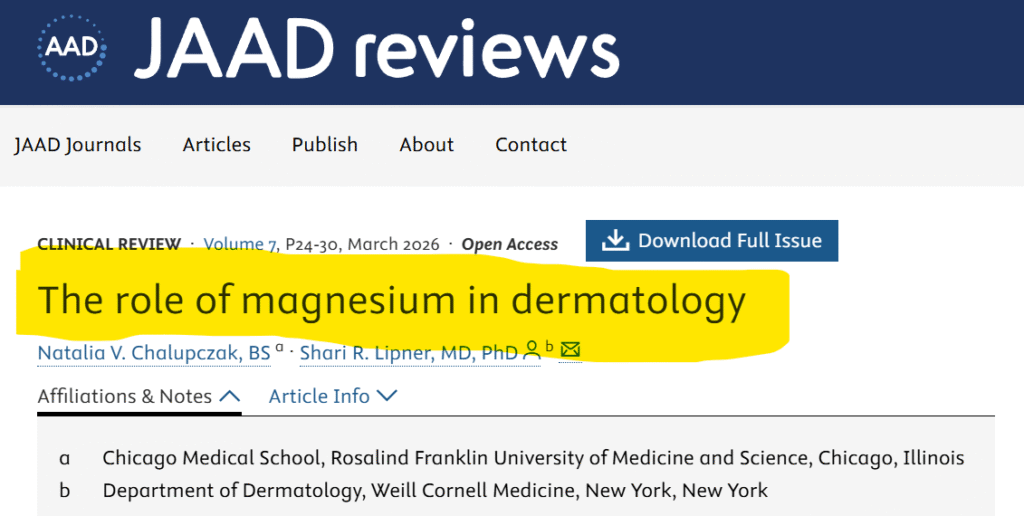 Elles ont mené une revue « complète de la littérature« , y compris en science fondamentale, translationnelle ainsi que des études cliniques évaluant le magnésium dans la biologie et les maladies cutanées.